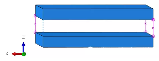 在利用ABAQUS对复杂结构进行有限元分析时,通常会使用弹簧单元进行刚度等效或减振隔离装置的模拟。深圳市有限元科技有限公司Abaqus软件及其他多款cae软件,有限元科技是以工程仿真软件开发为核心,集cae咨询、cae培训、cae软件研发与销售为一体的高科技企业。有限元科技本月开设Abaqus培训课程,详细讲解Abaqus软件操作步骤与每一步设置的原因和原理,并与学员们分享产品仿真实例,提高学员独立解决实际问题的能力。如需购买软件或软件培训及咨询服务等请联系电话:13632683051,QQ:4006046636。 下面将以图中所示模型为例,介绍ABAQUS中两种定义弹簧的方法: