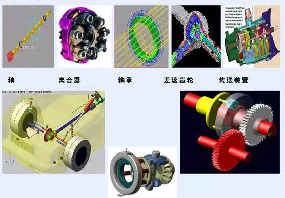 图4 发动机零件分析 4、NVH分析 随着收入水平的提高,消费者越来越看重汽车产品的舒适性即NVH性能,因此汽车开发中也必不可少的要进行NVH分析,主要包括动力系统NVH、车身NVH、底盘NVH三大部分。而汽车NVH分析则涉及到汽车在各级频率的模态分析,不同路面工况激励下的汽车振型,还有风噪、发动机噪声、轮胎噪声等声学研究,这些都离不开CAE仿真分析。