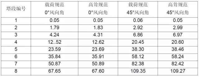 表8通信铁塔各塔段最大水平位移(mm)